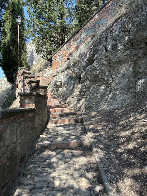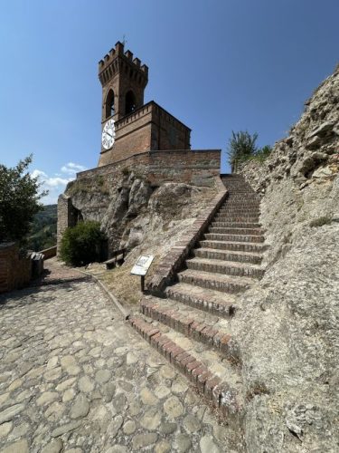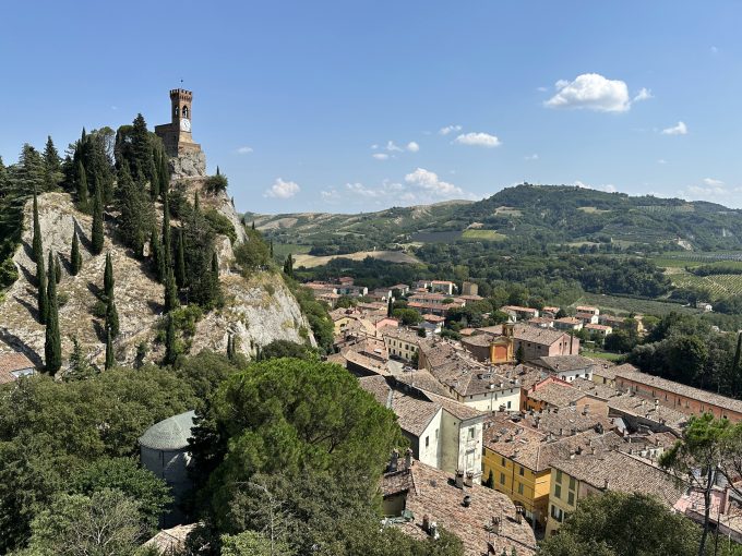 We’d gone to Brisighella to see the ‘Three Hills’, three rocky peaks surrounding the small medieval village. And if there’s a rocky peak in Italy, you can be sure there’s a significant monument atop it. In Brisighella’s case, it’s the Fortress, the Clock Tower and the Sanctuary of Monticino.