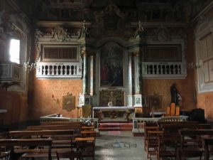 Access is via a door to the right of the public chapel. We pressed the buzzer and a minute later one of the Sisters answered. How do you explain (in poor Italian) that you’re tourists who want to take a look at the private chapel? Not easily.